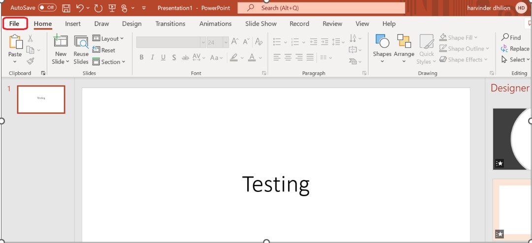 STEP 1 – Open the file that you want to print, click on the File Option on the top left-hand corner.