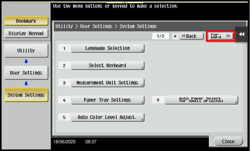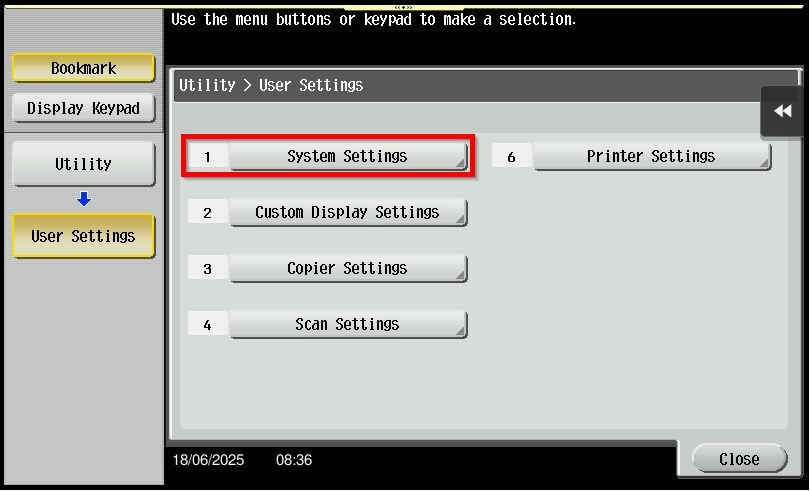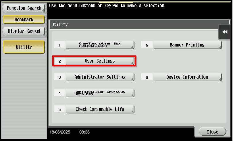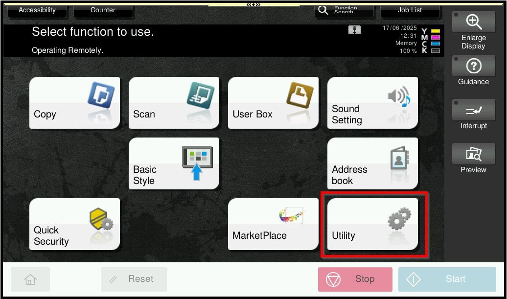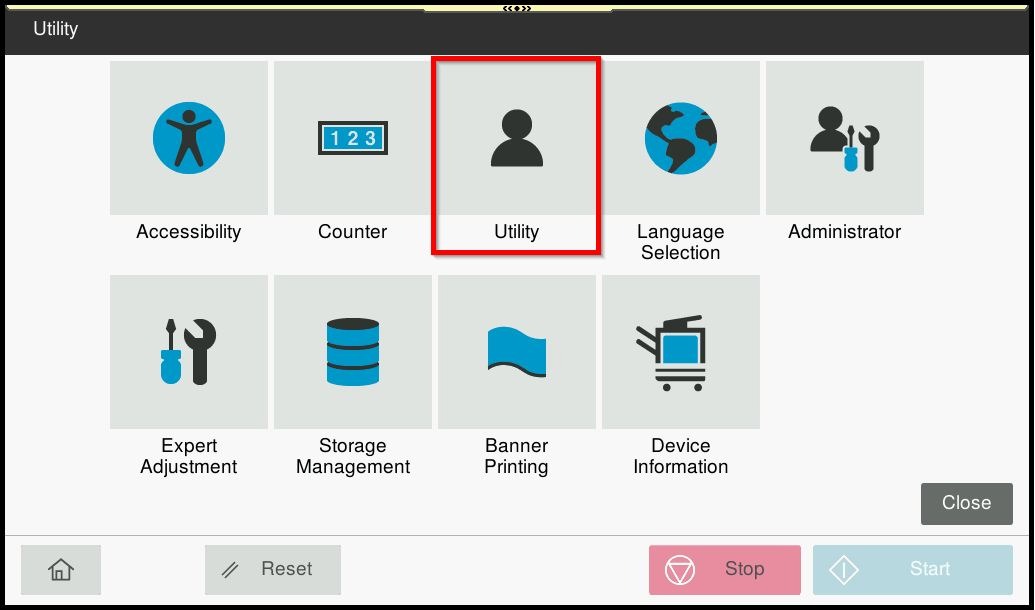 STEP 1 – On the Konica Minolta machine, Select [Utility].