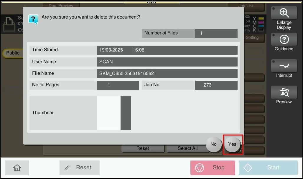 STEP 4 – Select [YES] to proceed to delete the scanned files, after that try to scan again to same user box.
