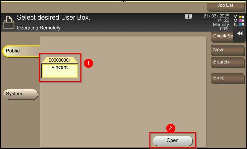 STEP 3 – Select the user box name and click [OK] to open the user box.
