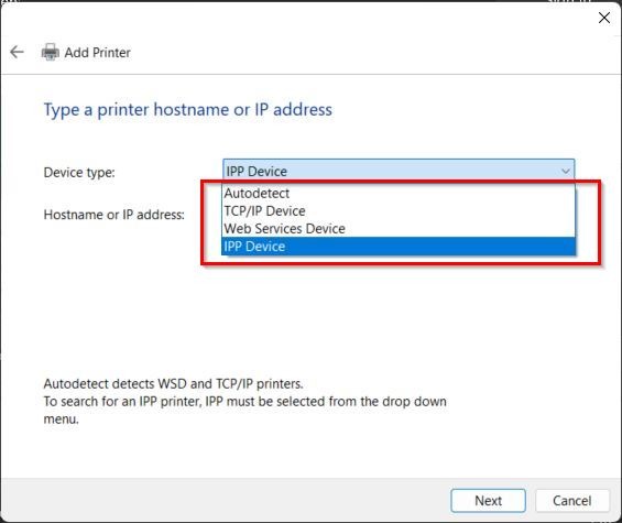 STEP 2 – After completing all these steps, the TCP/IP Device option will display out from the previous hidden option, allowing you to proceed with the printer driver installation.