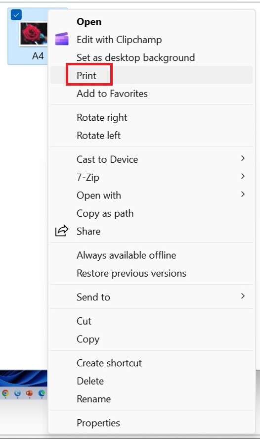 Step 1(b) – In order to print from Photos application, right click of the file that want to print, click on [Print] or [Show more options] – [Print] in windows 11 version.