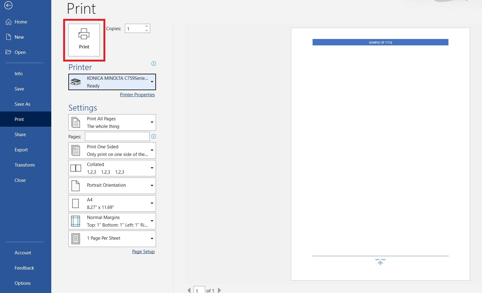 Step 6 – Once the template has been saved on computer, open the document that want to print. Select [Printer Properties].